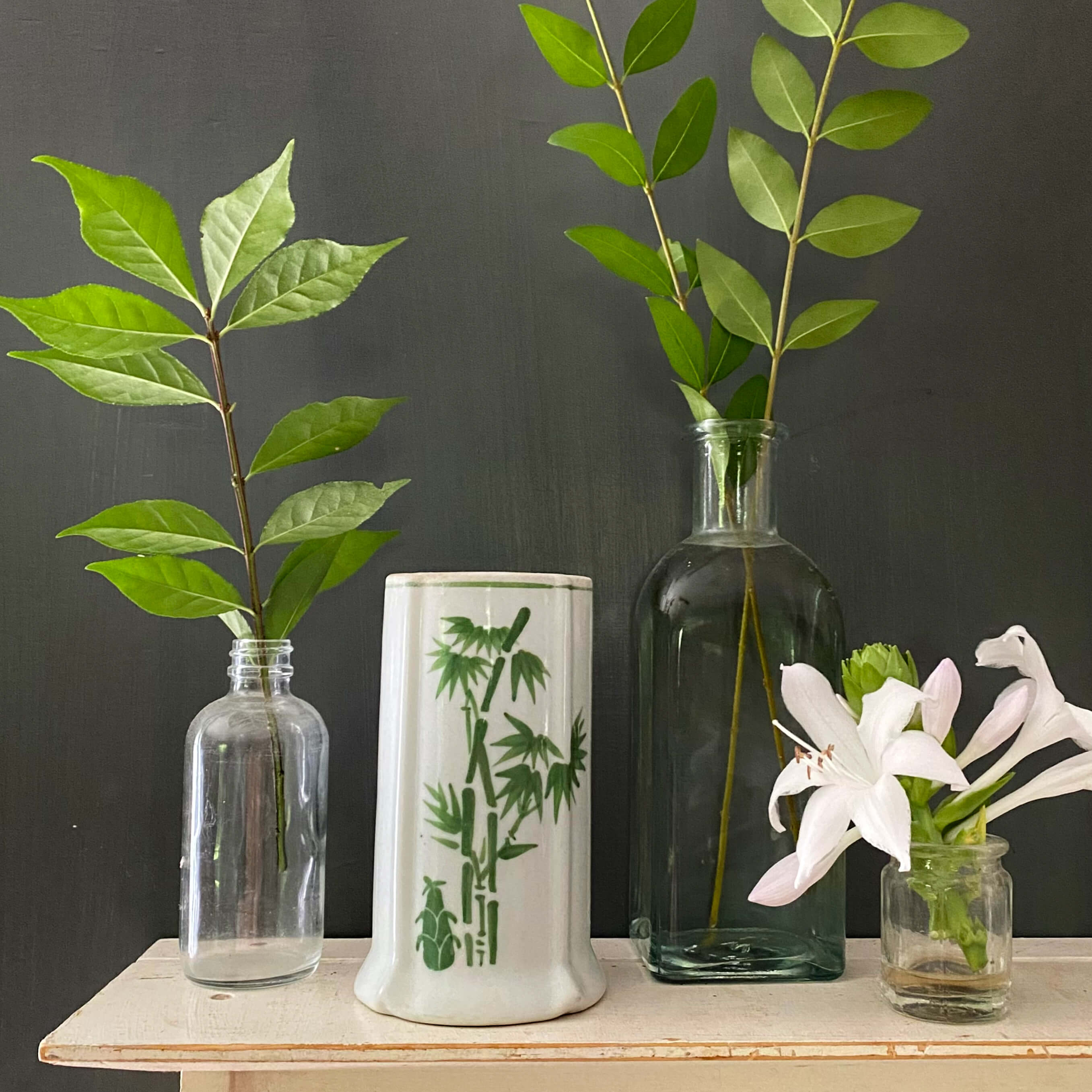 Functional for use as a vase and also a planter for succulants, air plants or baby bamboo, this long. slender style is also perfectly sized for holding paintbrushes, writing utensils, fireplace matches, knitting needles, flatware, skewers, and chopsticks. A holder for all sorts of creative purposes, whether you are into gardening, cooking, painting or crafts, we just love vintage pieces like this that are both pretty and functional depending on your specific pursuits.